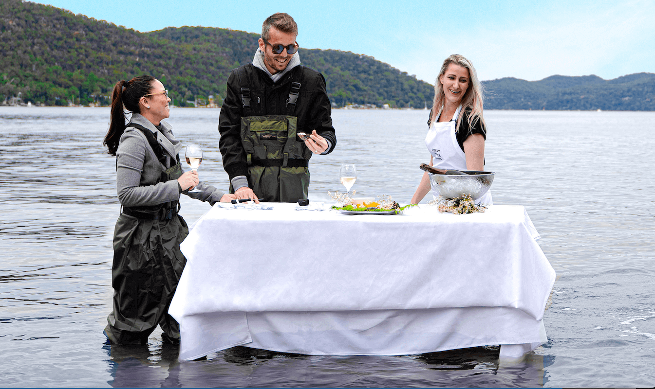 We're a family-owned oyster farm that has been operating for over 15 years. We are the first oyster farm in NSW that offers in water dining where you can stand in the very waters your oysters are harvested from. We've launched this new in-water experience, where you can walk among the local oyster leases in waders, and try your hand at shucking fresh oysters from the river surrounded by nature.