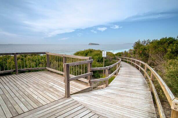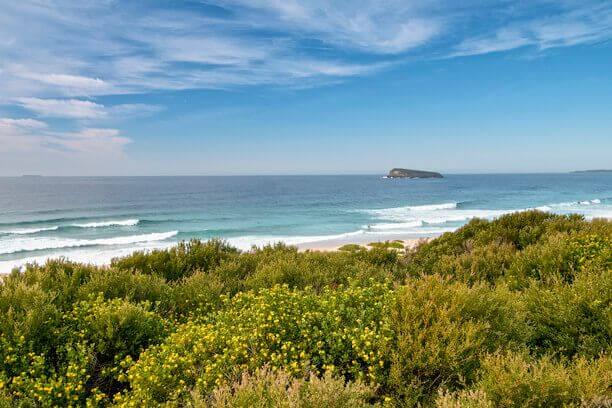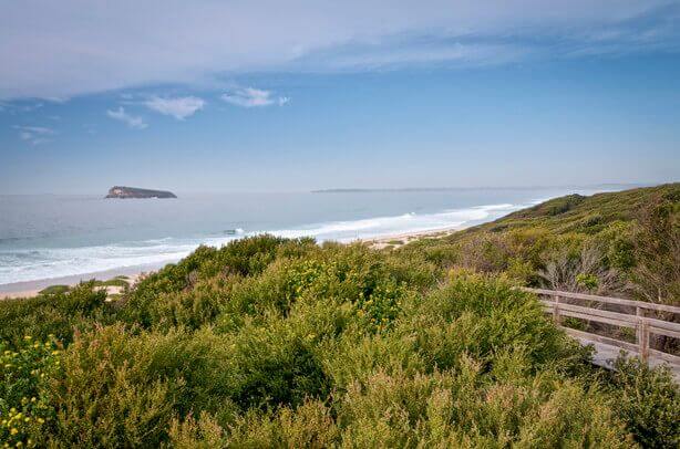 Check the surf and keep an eye out for the migrating whales from the lookout at Tea Tree Picnic Area. A short walk to Birdie Beach, it’s a great spot to stop for a picnic lunch and a swim in the ocean.