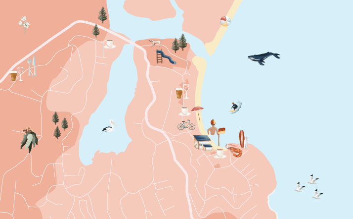 Quality coffee spots sit around every corner of Avoca. For casual, go straight to The Point Café, a local institution, located underneath the Avoca Beach Surf Life Saving Club. For French style bakery treats pop by Ludo’s Gourmet Kitchen, one of the Coast’s finest patisseries. And you can’t miss the bright yellow floral mural signalling Like Minds, a friendly community café with a fresh, sustainable menu and zero waste ethos. Owners Mel and Jimmy use their café’s modern space to grow veggies, host regular farmers markets, produce swaps and the work of local artists. Check out the larger-than-life botanical mural painted on their building by botanical artist Nastia Gladushchenko.