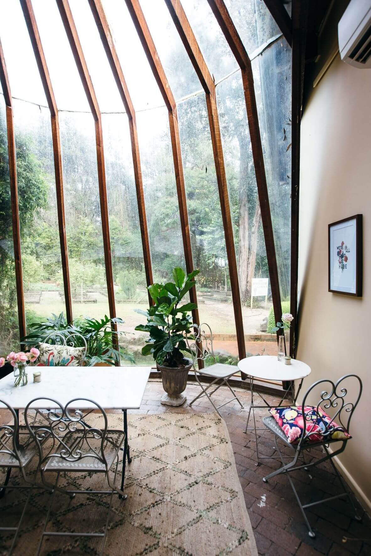 A European-style cafe set in the lush garden grounds of Distillery Botanica in Erina.