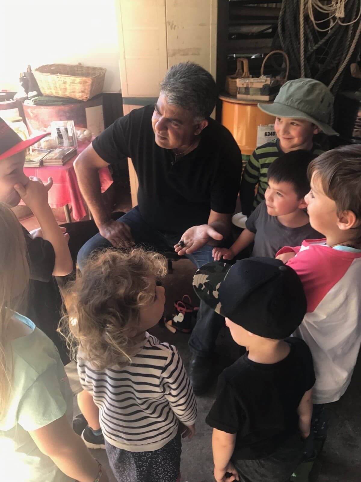 Our tour groups are small in size and we give everyone the opportunity to cuddle small animals, pat big animals, collect eggs and ask questions.